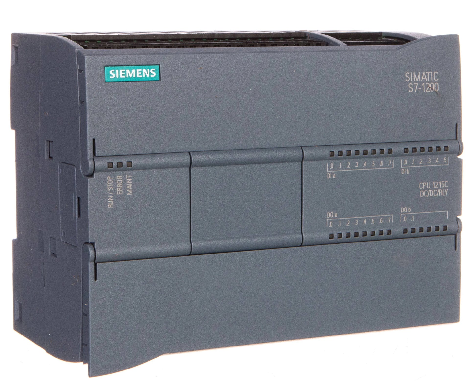 SIMATIC S7-1200, CPU 1215C, compact CPU, DC/DC/relay, 2 PROFINET ports, onboard I/O: 14 DI 24 V DC; 10 DO relay 2 A, 2 AI 0-10 V DC, 2 AO 0-20 mA DC, power supply: DC 20.4-28.8 V DC, program/data memory 200 KB