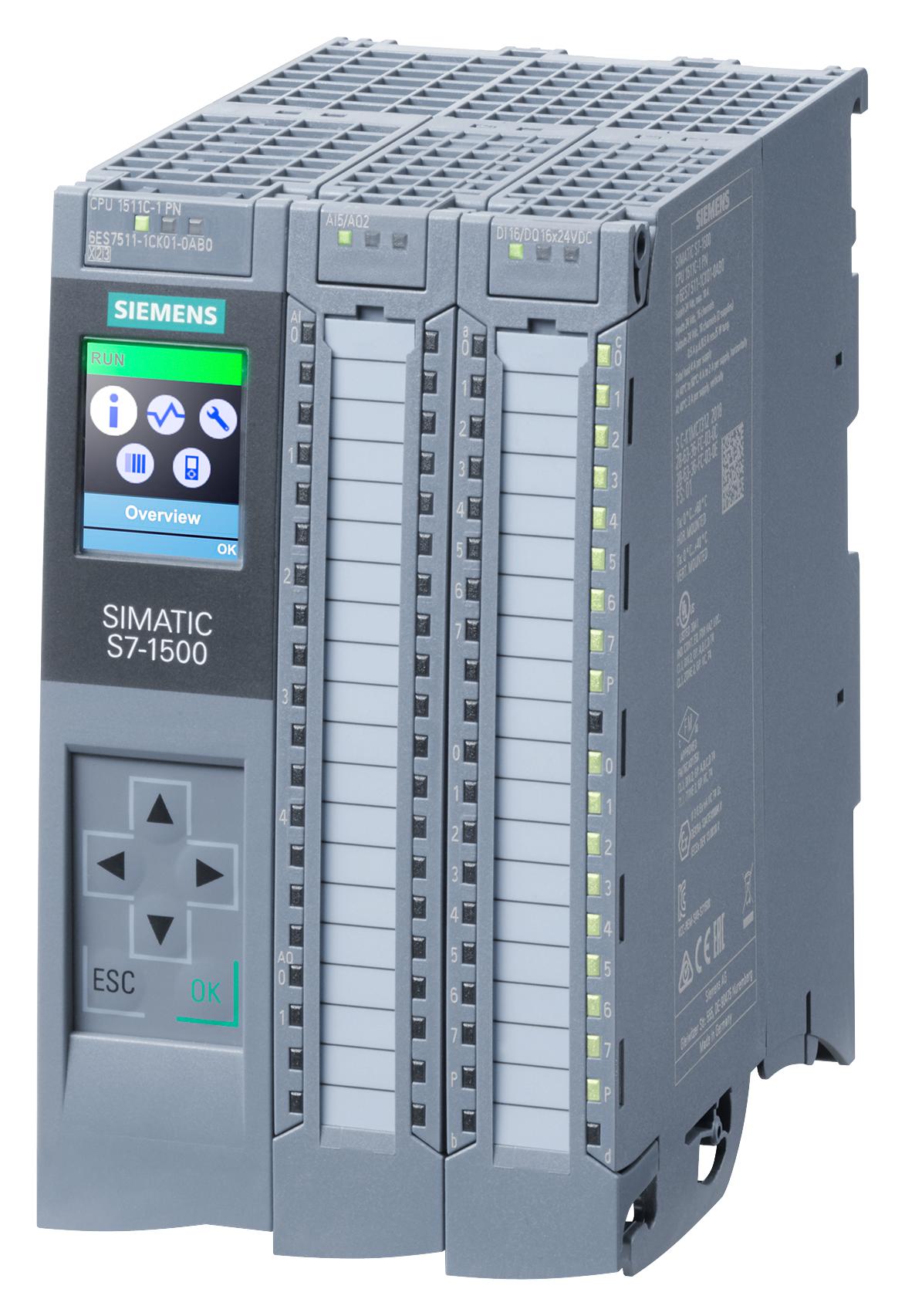 SIMATIC S7-1500 Compact CPU CPU 1511C-1PN, central processing unit with working memory 175 KB for program and 1 MB for data, 16 digital inputs, 16 digital outputs, 5 analog inputs, 2 analog outputs, 6 high speed counters, 4 high speed outputs for PTO/PWM/frequency output 1. interface: PROFINET IRT with 2 port switch, 60 NS bit-performance, incl. front connector push-in, SIMATIC memory card necessary