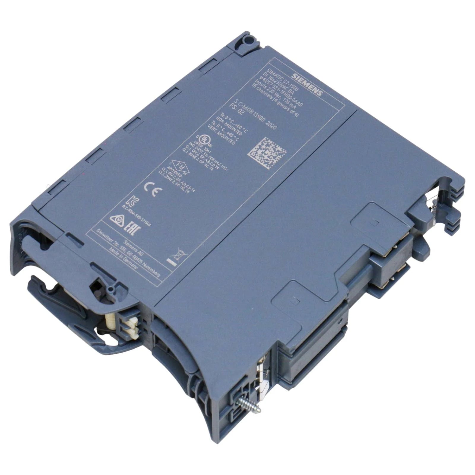 SIMATIC S7-1500, digital input module DI 16x230 V AC BA, 16 channels in groups of 4; Input delay 20 ms; Input type 1 (IEC 61131): Front connector (screw terminals or push-in) to be ordered separately