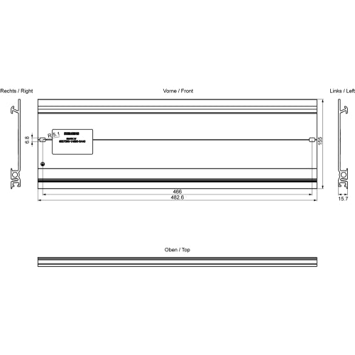 SIMATIC S7-1500, mounting rail 482.6 mm (approx. 19 inch); incl. grounding screw, integrated DIN rail for mounting of incidentals such as terminals, automatic circuit breakers and relays